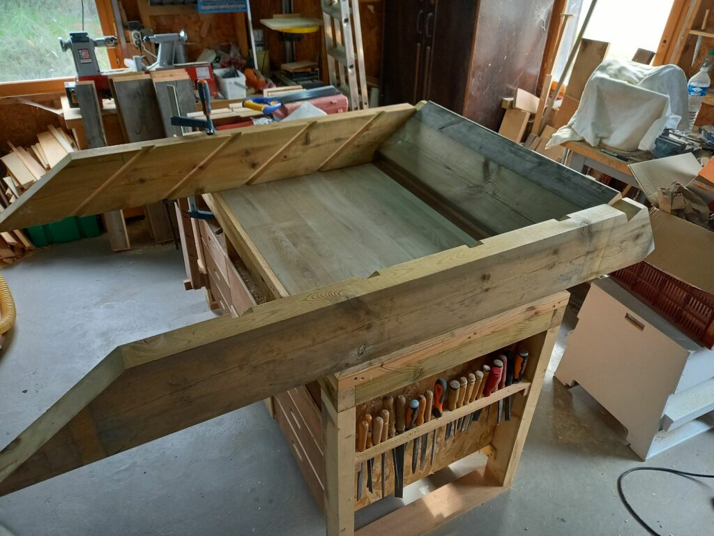 Notamment, j’ai fait deux pieds de lampes , l’un dans un tronc d’if (merci Freddy), et dont j’avais montré l’ébauche dans cet article, et l’autre dans une loupe d’un arbre dont je ne connais pas l’essence et qui du coup est appelé ici du jesaispas.